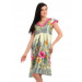 Satin multi- coloured knee-length nightwear with pink lace trims at the neckline and cuffs, floral print all over, V-neckline and cap sleeves