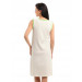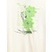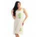 Off white and green knee- length sleeveless nightdress with a split neck and floral print, has net detail at the chest and above the left hem