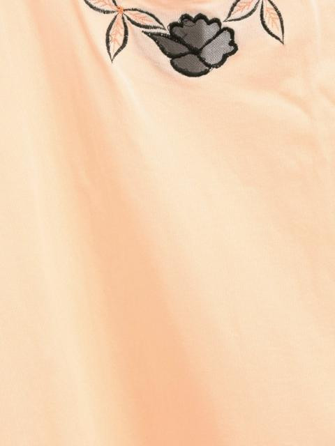 Peach knee-length nightdress with a round neck, short sleeves with ruffles on the cuffs and embroidery around the neckline