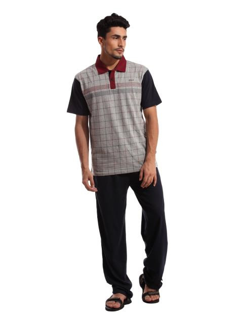 SDL by Sweet Dreams Men Grey & Navy Blue Pyjama Set