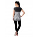 Grey printed top, has a notched round neck, short sleeves and side slits
