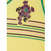 Yellow sleeveless top, has a V-neckline, applique with embellishments on the left chest and side slits