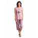 Matching capri pyjama bottoms in flower pink, white and magenta checks, elasticated waist with drawstrings, pockets on the sides
