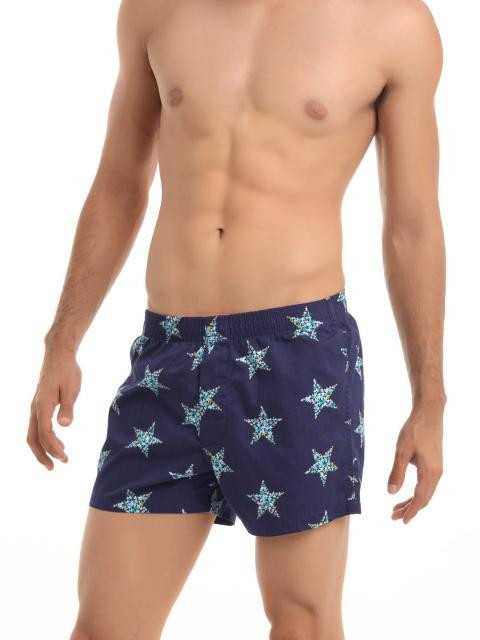 Blue printed boxers, has a soft elasticated waistband and a key hole fly
