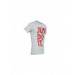 Grey round neck t-shirt made of 100% cotton, has short sleeves and print on the chest