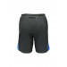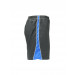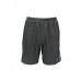 Grey shorts made of 86% polyester and 14% spandex, has an elastic waist with interior drawcord and a mesh side panel