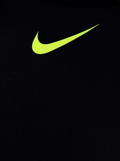 Whether you're playing at Wimbledon or in your local park, this black t-shirt from nike will give you the comfort and flexibility you require during your matches. The mesh panel at the back ensures better breathability during games, and the eye-catching graphic print ensures that you are the centre of attention. Engineered with Nike's Dri Fit technology, it wicks away sweat to keep you dry and comfortable during the game. Team the tee with comfortable tracks or shorts when you're ruling the court, or with jeans for casual outings.