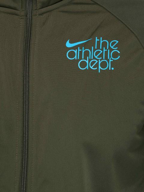 Look on trend while training in this olive green tracksuit from the Athletic Department collection of nike. The polyester fabric provides greater comfort and allows you to train longer. The tracksuit can be worn together or separately and works perfect for gym sessions or sporting activities. The track jacket can be worn with tees and jeans as well.
