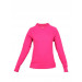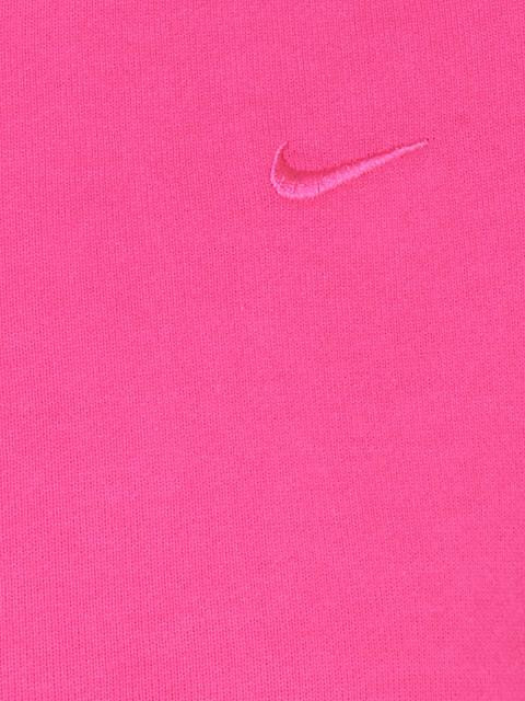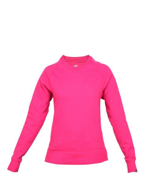 Pink round neck jacket made of 100% cotton, has a crew neck, long sleeves with ribbed cuffs, panel on the sides, embroidered nike swoosh on the left chest and a ribbed hem