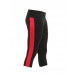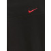 Black training capris, double layered yoke at front and back, embroidered Nike swoosh on front yoke, gusset at crotch, front panel extends to back at side seam, dark pink panel at back, flat lock stitch at all seams, printed branding on back inner yoke for abrasion free comfort
