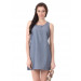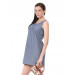 Blue sleeveless woven dress, has a round neckline, half buttoned placket and sash on the sides that can be tied at the back