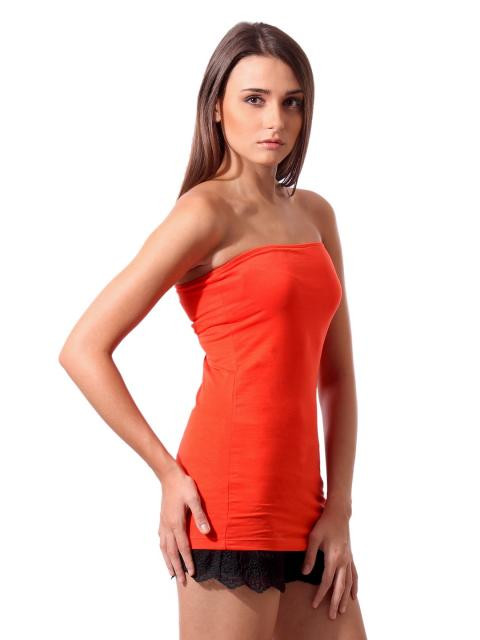 Pillar box red tube top with elasticated top hem, double layer at top with elasticated band to give a firm Fit