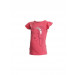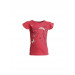 Peach round neck top made of 100% cotton, has short ruffle sleeves and print on the chest