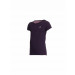 Purple round neck top made of 100% cotton, has short sleeves and embroidered branding on the left chest