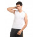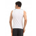White muscle-vest, round-neck, sleeveless, grey piping at front, black taping at shoulder, moulded armholes for flexibility, printed branding on the inside offers abrasion-free comfort, bio-washed to soften the fabric and avoid skin irritation