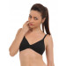 Black brassiere, non wired, seamless cups with a rosette detail between the cups, has adjustable, slim shoulder straps, low neckline and singe hook and eye closure at the back