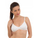 White brassiere, non wired, seamless cups with a rosette detail between the cups, has adjustable, slim shoulder straps, low neckline and singe hook and eye closure at the back