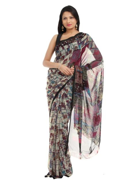 Multicoloured sari with beige, magenta and black accents