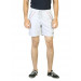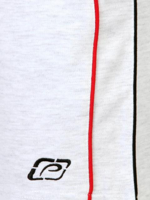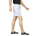 A pair of grey melange knitted mid-rise shorts, has two pockets, an elasticated waistband with a drawstring fastening