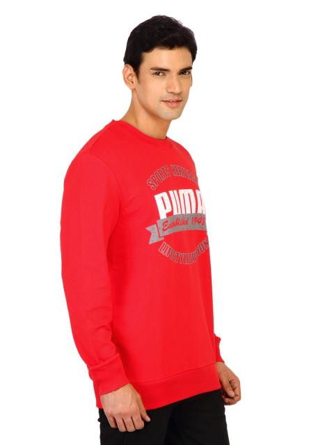 Red sweatshirt, has a round ribbed neck, full sleeves with ribbed cuffs, ribbed hem and distressed graphic print on the front
