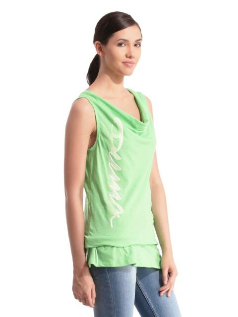 This green shawl neck cotton top from puma with an uber cool chest print is a great summery choice. Team it with skinny jeans or denim shorts to make heads turn.