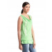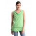 Green shawl neck top made of 100% cotton, sleeveless, has graphic print on the right side, has a drawstring above the hem and embroidered branding at the back