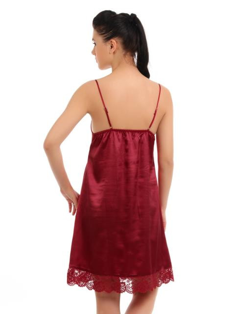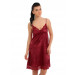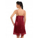 Red knee-length nightdress with a V-neck, adjustable thin shoulder straps, lacing with a tie up detail at the neckline and lacing at the hem