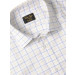 White shirt with blue and yellow broad checks, made of 100% cotton, has full sleeves with buttoned cuffs, tipped collar with buttoned front placket, patch pocket on left chest and a curved hem