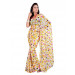 White sari with Multi Coloured, printed dots, comes with a blouse piece