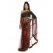 Rust orange netted sari with embroidery, has panelling and embroidery at the borders