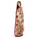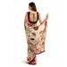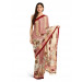 Beige printed saree with ochre, red and black accents, has solid taping along the border