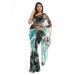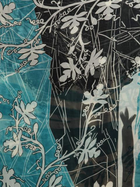 Black and greenish blue sari with off-white print