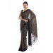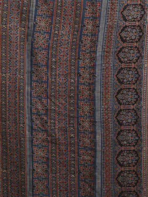 Blue mull printed saree with Ajrakh hand block print and tassels at the edge of the pallu