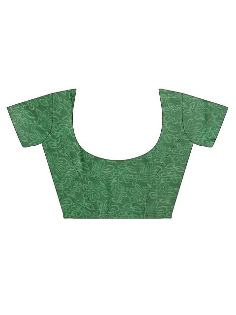 Green and mustard yellow, printed georgette sari with applique on the borders