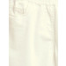 White trouser bottoms that have two insert pockets on the sides, small coin pocket on the right, two patch pockets at the back with embroidery and a comfortable elasticated waistband