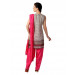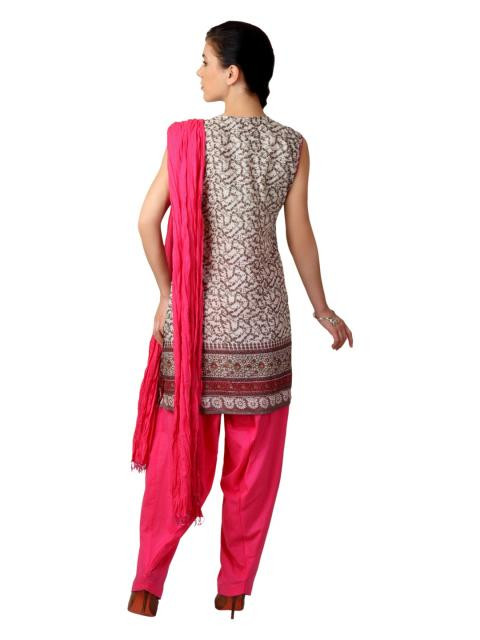 Cream-coloured printed kurta, has a round neck, mock buttoned placket in front, sleeveless, pink corded piping at neck and armhole, vented hem