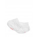 White booties with mildly elasticated foldable cuffs and print on the sole