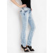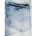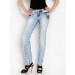 Blue jeans with a washed look, made of 98% cotton and 2% spandex, has two insert pockets, two patch pockets on the back with stitch detailing, comfortable waist with loops and a brand patch, and a button and zipper closure on the front