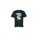 Black T-shirt made of 100% cotton, has a round neck, short sleeves and graphic print on the front