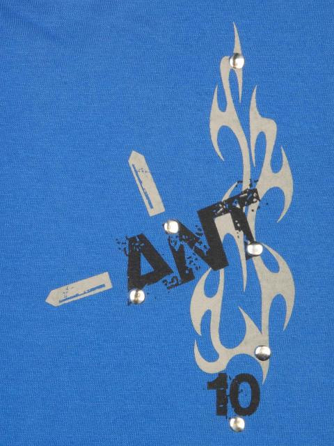 Bring out the biker in your little one in this cool blue tee from ant. The tattoo graphic on the left with the stud detailing adds a big dose of rocker chic. Team this with denim shorts and cool canvas footwear when you take him out the next time. The soft cotton fabric will keep him feeling fresh and comfortable all day long, while he enjoys those wondrous moments with you in style.