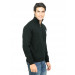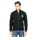 Black sweater made of 100% acrylic, has a mock neck with a zipper front, long sleeves with ribbed cuffs, two pockets on either side, flock print of brand collection appliqued on the left chest and a ribbed hem