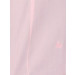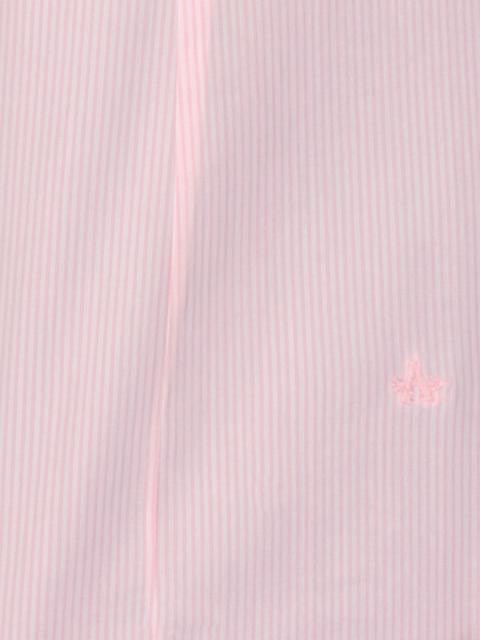 Pink and white striped shirt made of 100% cotton, has a spread collar, three quarter sleeves with single button cuffs, full buttoned placket, brand badge above the left hem and a curved hem