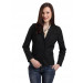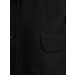 Black jacket, long sleeves, notched lapel, two button front, two front flap pockets, fully lined