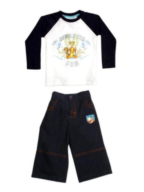 Your little boy is all set to double the fun this summer in this cotton white tee with slanted, long, black sleeves and a pair of denims from disney. Tigger and Pooh will join him in the fun when he gangs up with his friends for s fun-filled summer evening.