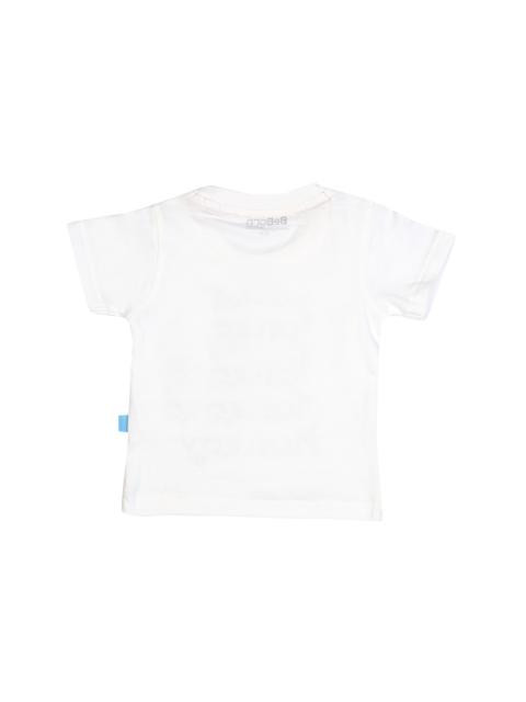 This white t-shirt from doodle is made specially for your adorable little boy. The graphic print on the front, with the text “Cheeky Monkey” seems so apt for him, that you will notice how much of a cheeky little monkey he really is! Team this cute tee with jeans or denim shorts and shower your love on the precious darling.