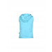 Light blue sleeveless hooded jacket made of 100% cotton, with applique and graphic print on the front, and fabric tape inseam on the neckline