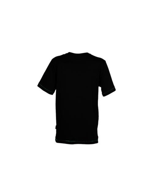 Black round neck t-shirt made of 100% cotton, with short sleeves and graphic print on the front