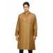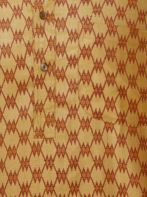 Mustard printed kurta made of Tussar silk/ cotton, has a mandarin collar and a half buttoned placket, long sleeves and a vented hem