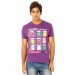 Purple round neck t-shirt made of 100% cotton, that has ribbed neckline with green thread detailing on the inseam of the collar, short sleeves, brand tab near the left hem and graphic print on the front