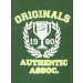 Green sweatshirt made of 100% cotton, has a round ribbed neckline with tape detailing on the inseam, long sleeves with ribbed cuffs, graphic lettering on the front, and a ribbed hemline